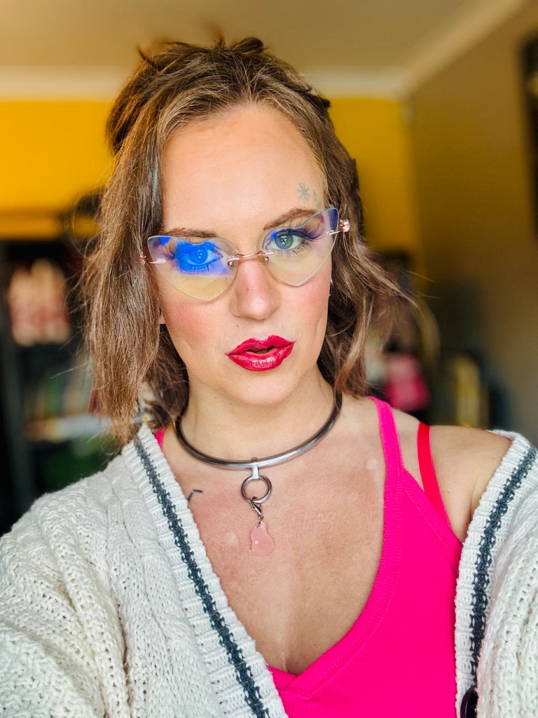 The femininity i perform as a bimbo is exaggerated to the point my brain doesn’t register it as woman. It may well look that way to other people – but that’s not been my concern for years, my view is that other people’s perception of my gender is none of my business. When i feel like i’m presenting female, i feel like i’m not myself and i don’t like it. When i feel androgynous, i feel good regardless of how others see it. And this? This feels like something else entirely – i am presenting as a living blow-up doll, i am presenting as an idea, as a concept of sexuality and sluttiness. i’m performing femininity in an over the top way that feels more like drag than anything else.